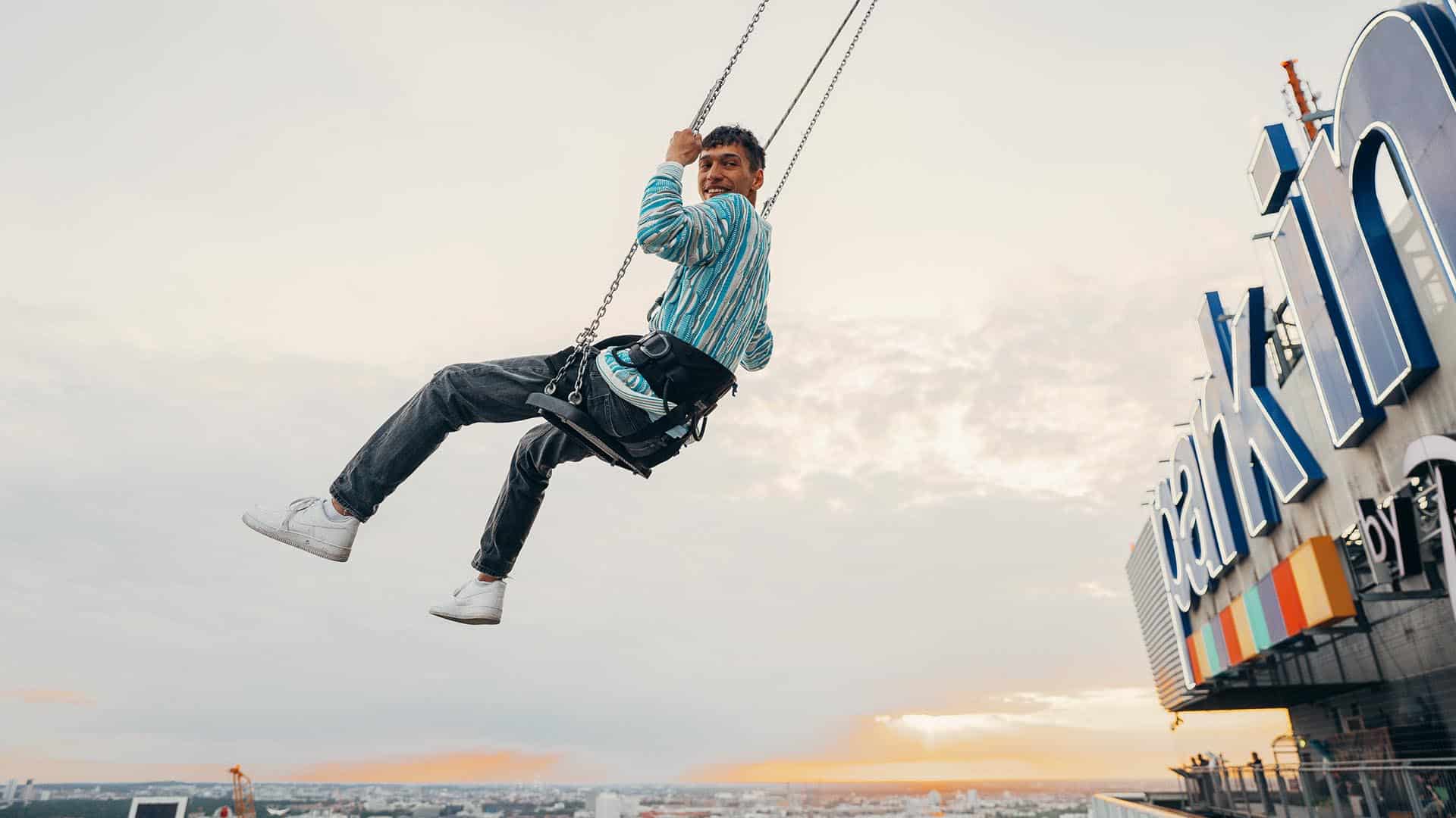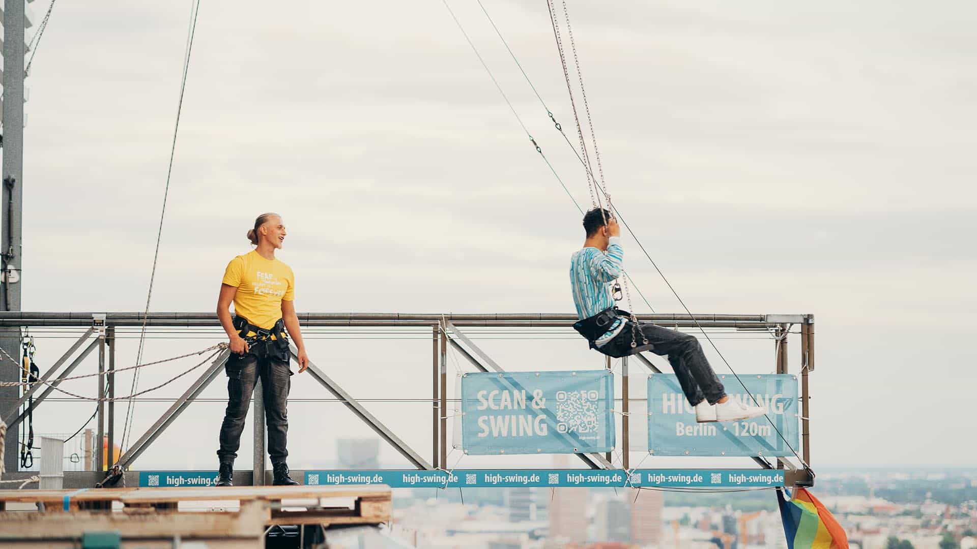 Dann beginnt dein Abenteuer. Für die nächsten 5 Minuten genießt du unseren High Swing und erlebst die absolute Freiheit über den Dächern Berlins – nur der Fernsehturm überragt dich!